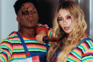 体育资讯10月31日讯 皇马前锋恩德里克更新社媒,晒出了他与妻子加布里埃利的万圣节扮相。他们扮演的是恐怖电影鬼娃回魂系列的恐怖公仔Chucky。