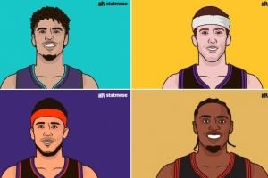 其中拉梅洛-鲍尔在4场比赛的第一节比赛共计得到45分,里夫斯在4场比赛的第二节比赛共计得到48分,布克在5场比赛的第三节比赛共计得到57分,马克西4场比赛的第四节则是共计53分。