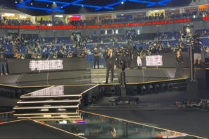 体育资讯10月31日讯 管泽元分享现场照片:这次梅奔的解说席距离近到是我翻过去就可以站在Faker身后看的程度。