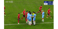 第15分钟,胡荷韬进球,但主裁先响哨示意周缘德手球,进球被取消,改为黄牌+任意球!↓