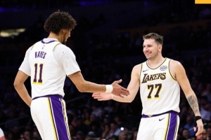 赛后,湖人官方社媒分享赢球海报,并写道:“洛杉矶今晚很吵。”海报上,东契奇和海斯击掌庆祝。