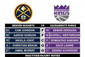 掘金首发:贾马尔-穆雷、克里斯蒂安-布劳恩、卡梅隆-约翰逊、阿隆-戈登、尼科拉-约基奇