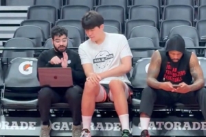库里父子探访杜克男篮更衣室!斯蒂芬与热门秀卡梅隆·布泽尔同框