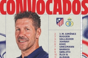 体育资讯11月4日讯 北京时间明天凌晨4点,欧冠联赛阶段第4轮马竞主场对阵圣吉罗斯,马竞公布了此役球队大名单。