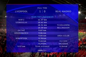 体育资讯11月05日讯 利物浦本轮欧冠1-0击败皇马。赛后官方跑动数据出炉。