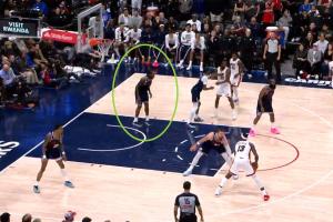 最后28秒,小卡在油漆区停留超过了三秒,且没有立即积极防守对方,应该吹罚防守三秒违例,热火应罚一球,裁判漏吹。