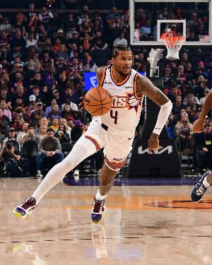 杰伦·格林本场迎来太阳首秀,他首发出战13分钟,13投6中,三分9中4,罚球2中0,得到16分2篮板2助攻1抢断,正负值+7全队最高。