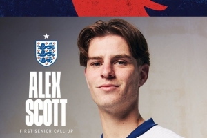 英格兰队公布新一期名单,伯恩茅斯22岁中场斯科特首次入选,英格兰队官方社媒晒出斯科特的海报,对他表示祝贺。