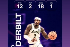 体育资讯11月10日讯 湖人球员范德比尔特更新社媒,转发了自己昨日比赛的数据海报。