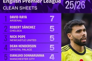 本赛季英超零封榜:
