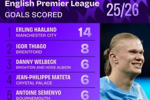 1.埃尔林·哈兰德,曼城,14球