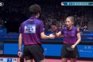 体育资讯11月13日讯 全运会乒乓球混双半决赛,林高远/刘诗雯4-3逆转击败袁励岑/王艺迪,晋级决赛。