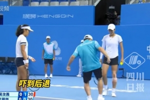 体育资讯11月13日讯 全运会网球青年组女团半决赛,赛场出现了不速之客。