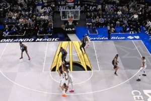 GIF-萨格斯对杰明三分犯规,疑似垫脚升级一级恶意犯规