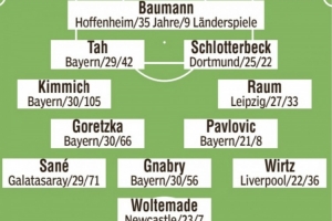 体育资讯11月17日讯 北京时间明天凌晨,德国将在欧洲世预赛最后一轮比赛中主场对阵斯洛伐克,《图片报》预测了德国队本场比赛的首发阵容。