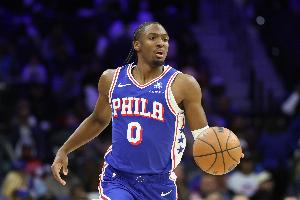 76人主控马克西上半场手感不佳,投篮频频打铁,不过他在组织上表现还不错。