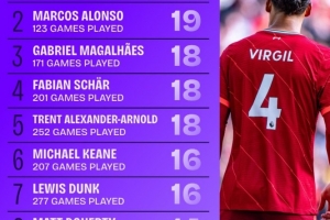 体育资讯11月19日讯 利物浦后卫范戴克有着不错的得分能力,头球轰炸是他的强项。德国转会市场盘点了2017-18赛季以来英超后卫进球情况,范戴克以21球居首。