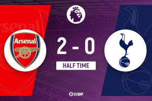 体育资讯11月24日讯 北京时间11月24日凌晨0时30分,2025-26赛季英超第12轮北伦敦德比在酋长球场展开角逐,阿森纳主场迎战热刺。上半场特罗萨德打破僵局,梅里诺挑传助攻,埃泽扩大比分,赖斯送助攻,阿森纳5分钟2球暂时2-0领先热刺,热刺半场0射门。