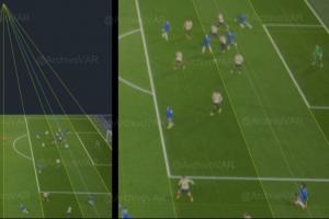 边裁原本举旗判罚了越位,SAOT(半自动越位系统)不得不介入,纠正了他的错误决定。