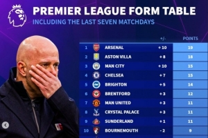 英超各队最近7轮联赛得分: