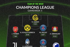 WhoScored欧冠第5轮最佳阵容: