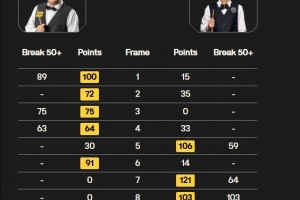 张安达打出三杆50+(89、75、63、58),塔猜亚·乌努打出一杆破百(103)和两杆50+(59、64)。