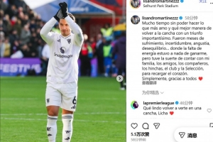 利马写道:“很久没有做我最热爱的事情了,最好的回归方式就是以一场至关重要的胜利重返球场。”