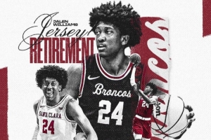 体育资讯12月2日讯 今日美国加州圣塔克拉拉大学男篮官方宣布,球队将退役杰伦·威廉姆斯大学时期球衣。