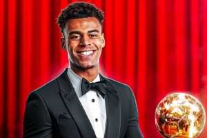 体育资讯12月2日讯 巴黎边锋杜埃领取2025年欧洲金童奖,俱乐部社媒晒海报祝贺。
