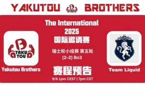 体育资讯9月6日讯 TI14瑞士轮今天继续进行!2-2轮次中,中国队Yakutou Brothers对上Liquid!