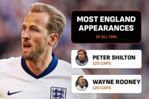 统计表明,这是凯恩生涯第108次为英格兰出场,现在他已经成为英格兰队史出场第五多的球员,仅次杰拉德(114)、贝克汉姆(115)、鲁尼(120)和希尔顿(125)。