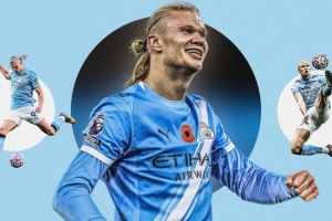 在突破英超百球里程碑后,未来12个月,哈兰德可能将塑造自己的足球传奇。不过,他也很现实,世界杯这个此前从未出现在他视野中的舞台即将到来,虽然小组赛抽签之前还很难说,但如果能帮助挪威打进淘汰赛,这将是他的一大成就。而他将有可能刷新自己的赛季赛季金球纪录(57场56球)。若按目前的效率,他可以在57场打进78球,这显然是不可能的,但不可否认,25岁的哈兰德正值巅峰期。
