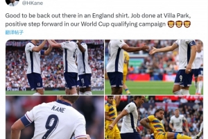 英格兰队长凯恩更新社媒动态,晒出比赛照片,配文:“很高兴再次身穿英格兰队球衣出战,在维拉公园完成了任务,这是我们在世界杯预选赛征程中向前迈出的积极一步。”