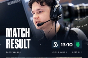 易边再战,“小京虾”三人联手为猎鹰拿到2分,长枪回合猎鹰小黑屋提B,京介三杀但没能帮助猎鹰拿分,B8铁血守B拿到下半场首分。猎鹰继续提速冲B又被B8守住,双方来到8-8。猎鹰经济崩盘送npl特四杀。再到长枪,龙哥残局1v2无力回天,Niko第19回合英雄AK只换掉esenthial,monesy捡起AK被npl打掉,B8拿到第11分。关键第20回合,匪口Niko三杀为猎鹰拿到第9分。后续B8枪械劣势翻盘,npl三杀收割残局为B8拿到赛点,猎鹰束手就擒,以10-13不敌B8。