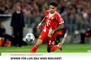 体育资讯12月06日讯 拜仁官方消息,迪亚斯欧冠禁赛上诉成功,禁赛由3场缩短至2场。
