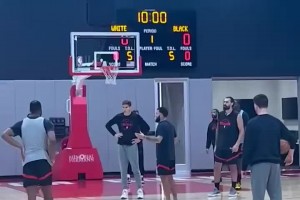 詹姆斯快攻合球撞倒米勒 裁判吹罚防守犯规 黄蜂教练挑战失败