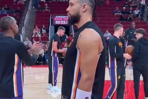 波杰姆抢板空中坐到OG身上 下落踢到后者鼻子 回看后未升级