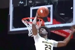 眼神透露杀气!希罗反击再抛传 拉松底线空接双手滑翔暴扣!