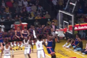 一飞冲天!迈尔斯·布里奇斯底线突破 穿越防守起飞双手暴扣