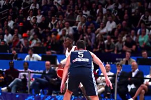 想得太简单!阿门篮下捡板想直接扣被巴洛大帽按下
