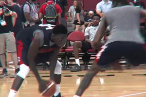 想得太简单!阿门篮下捡板想直接扣被巴洛大帽按下