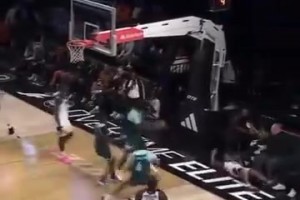 想得太简单!阿门篮下捡板想直接扣被巴洛大帽按下