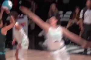 想得太简单!阿门篮下捡板想直接扣被巴洛大帽按下
