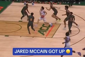 想得太简单!阿门篮下捡板想直接扣被巴洛大帽按下