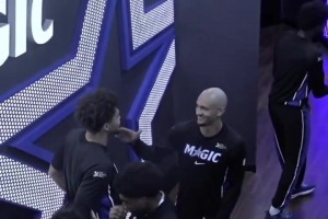 想得太简单!阿门篮下捡板想直接扣被巴洛大帽按下