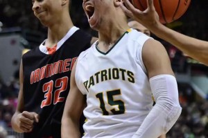 想得太简单!阿门篮下捡板想直接扣被巴洛大帽按下