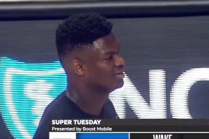 想得太简单!阿门篮下捡板想直接扣被巴洛大帽按下