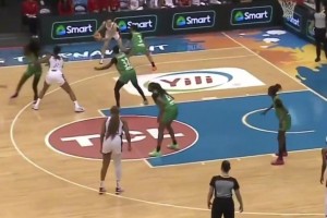 想得太简单!阿门篮下捡板想直接扣被巴洛大帽按下