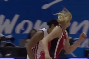 想得太简单!阿门篮下捡板想直接扣被巴洛大帽按下