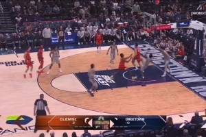 想得太简单!阿门篮下捡板想直接扣被巴洛大帽按下